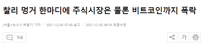 - 하루하루 오미크론 소식에 시장 변동성이 심화홤